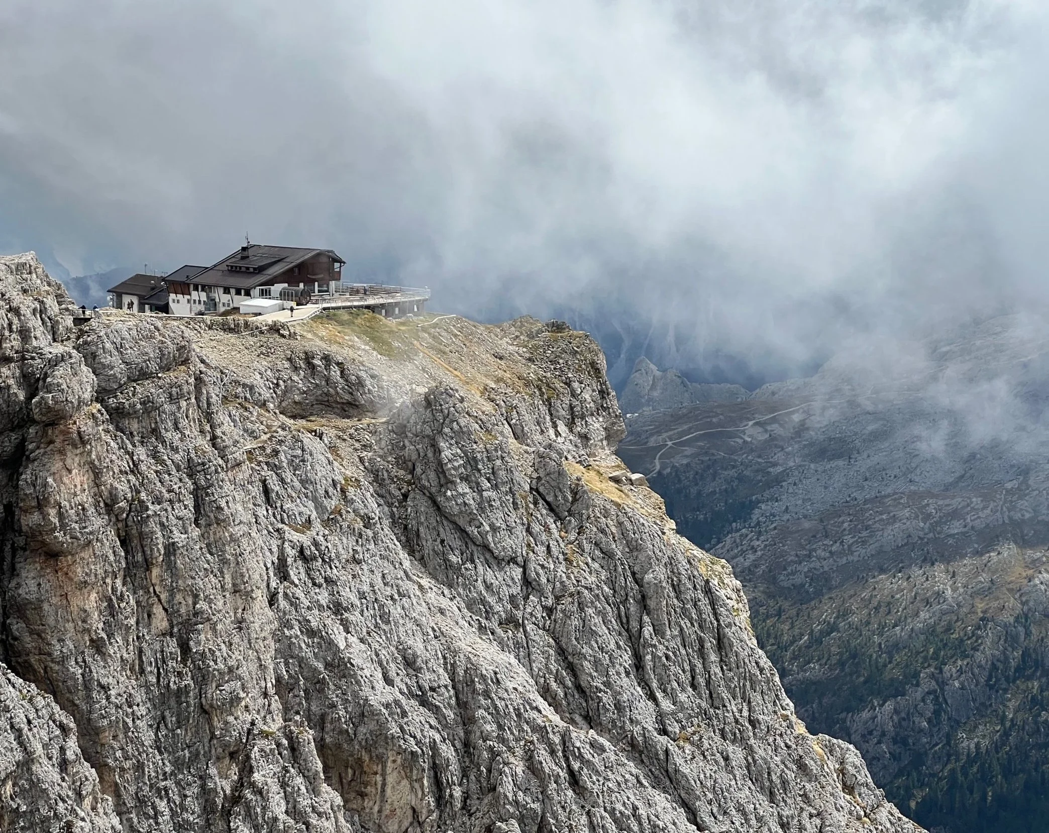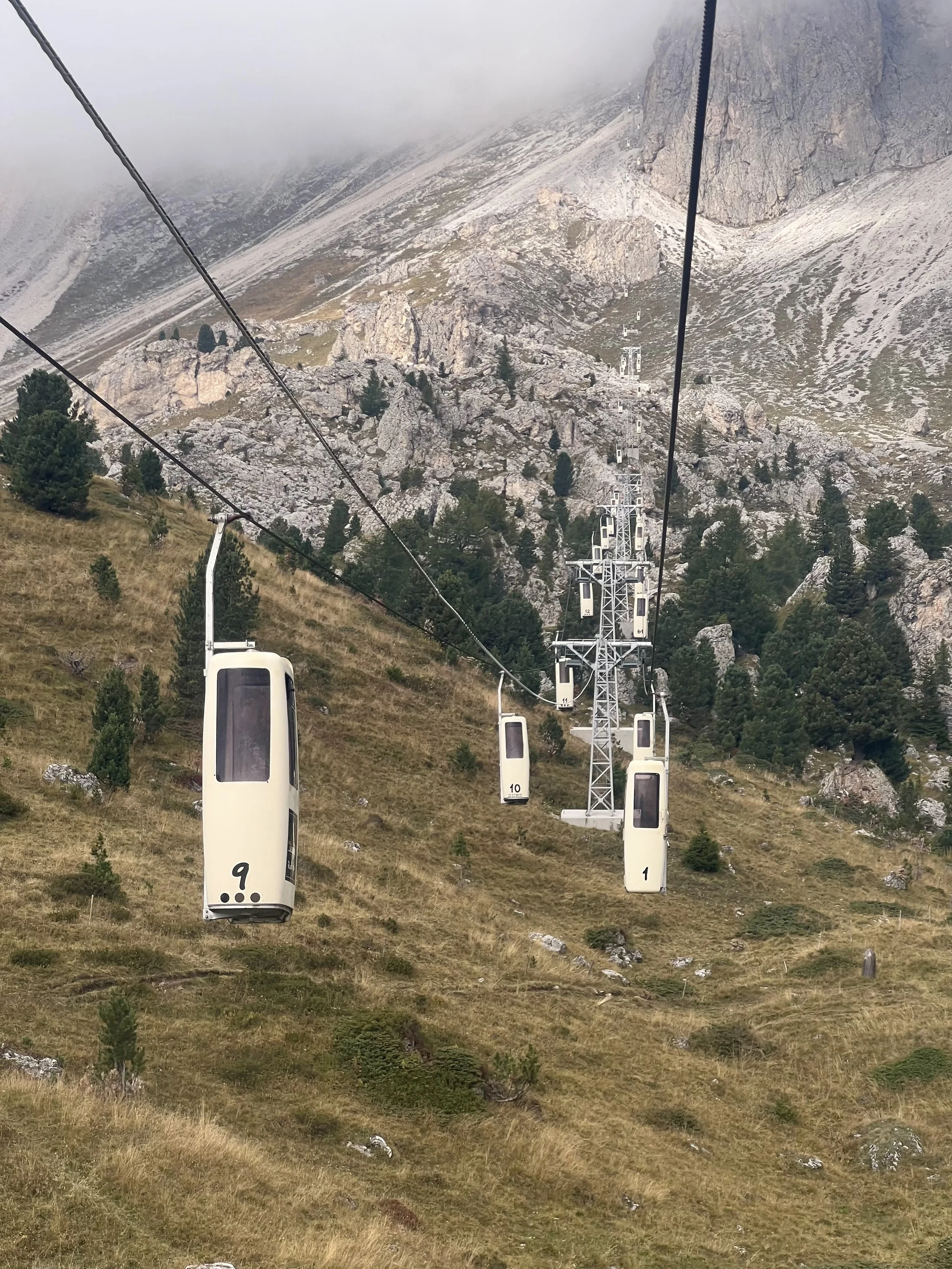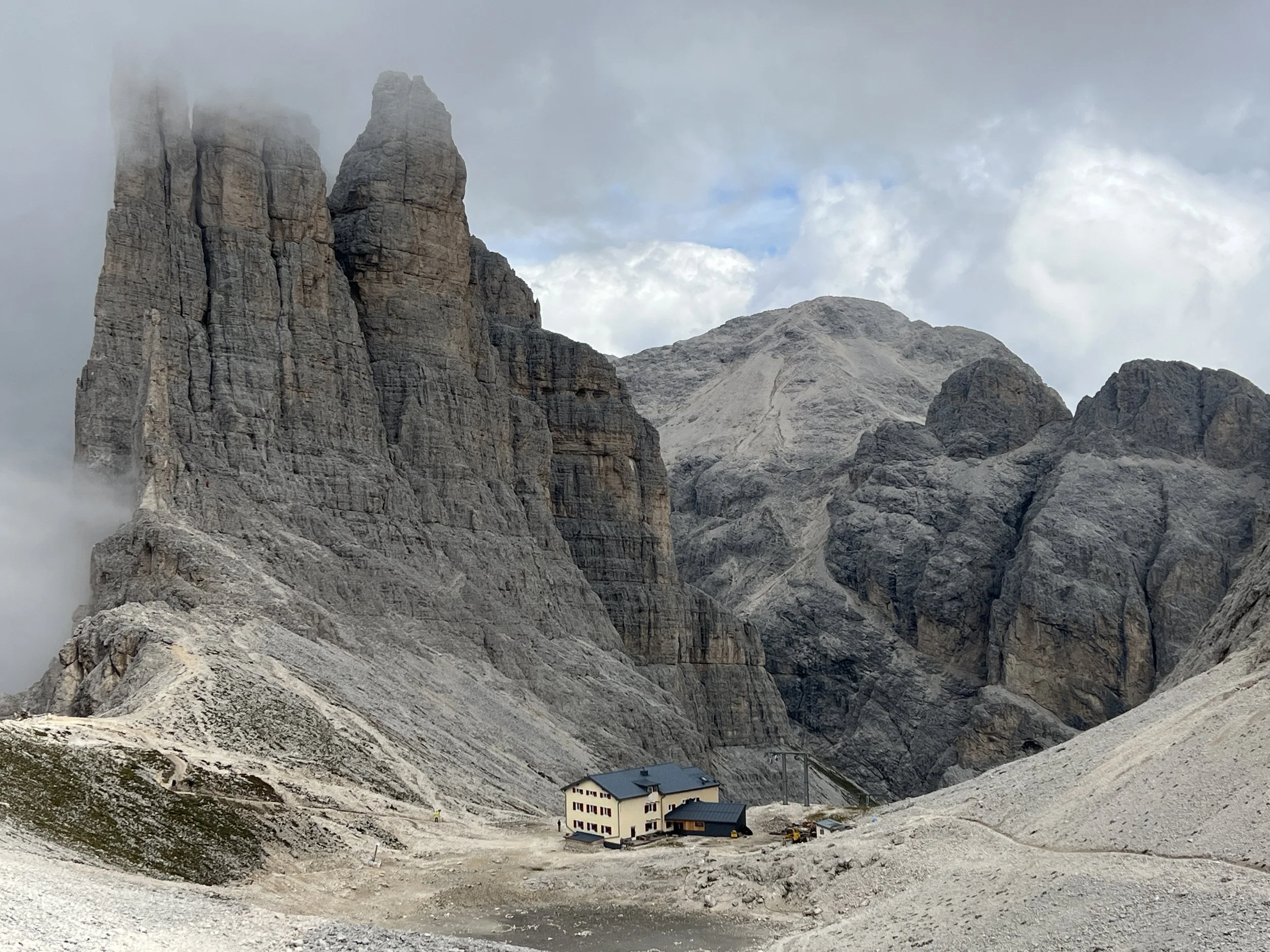Hikers have a day to explore the San Casciano area or relax at the hotel. There’s an excellent Ladin museum in town, and lifts into the higher hills. In the late afternoon, a van pickup is needed for the trekkers arriving at Passo Pordoi. We’ll all swap stories from the trails, roads, and dangling phone booths in the wind.